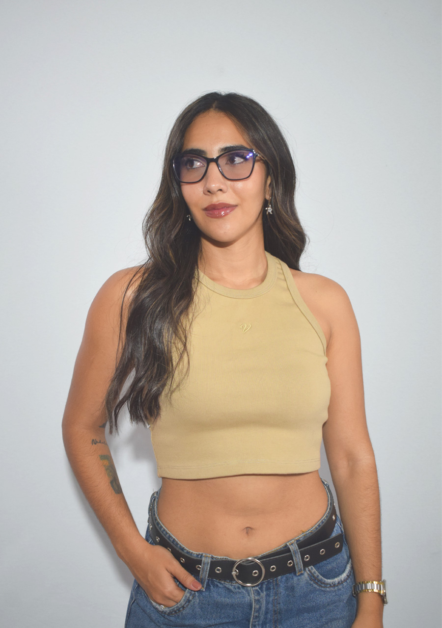 Crop top de dama en tejido rib, suave y elástico para un ajuste cómodo y favorecedor. Su diseño corto y moderno resalta la figura, con bordado en alto relieve en delantero y marquilla en costado derecho.