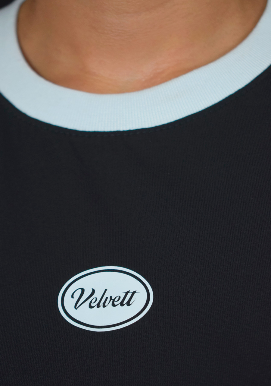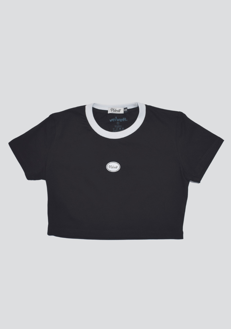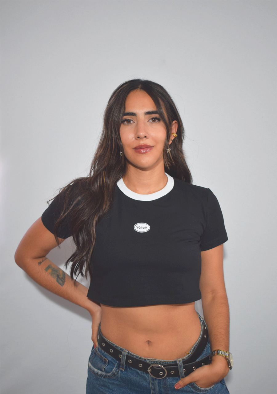 Crop top de dama en Algodón, con cuello redondo en rib blanco, silueta ajustada al cuerpo, suave para un ajuste cómodo y favorecedor. Su diseño corto y moderno resalta la figura, con estampado en vinilo textil adelante y marquilla en cuello y costado derecho.