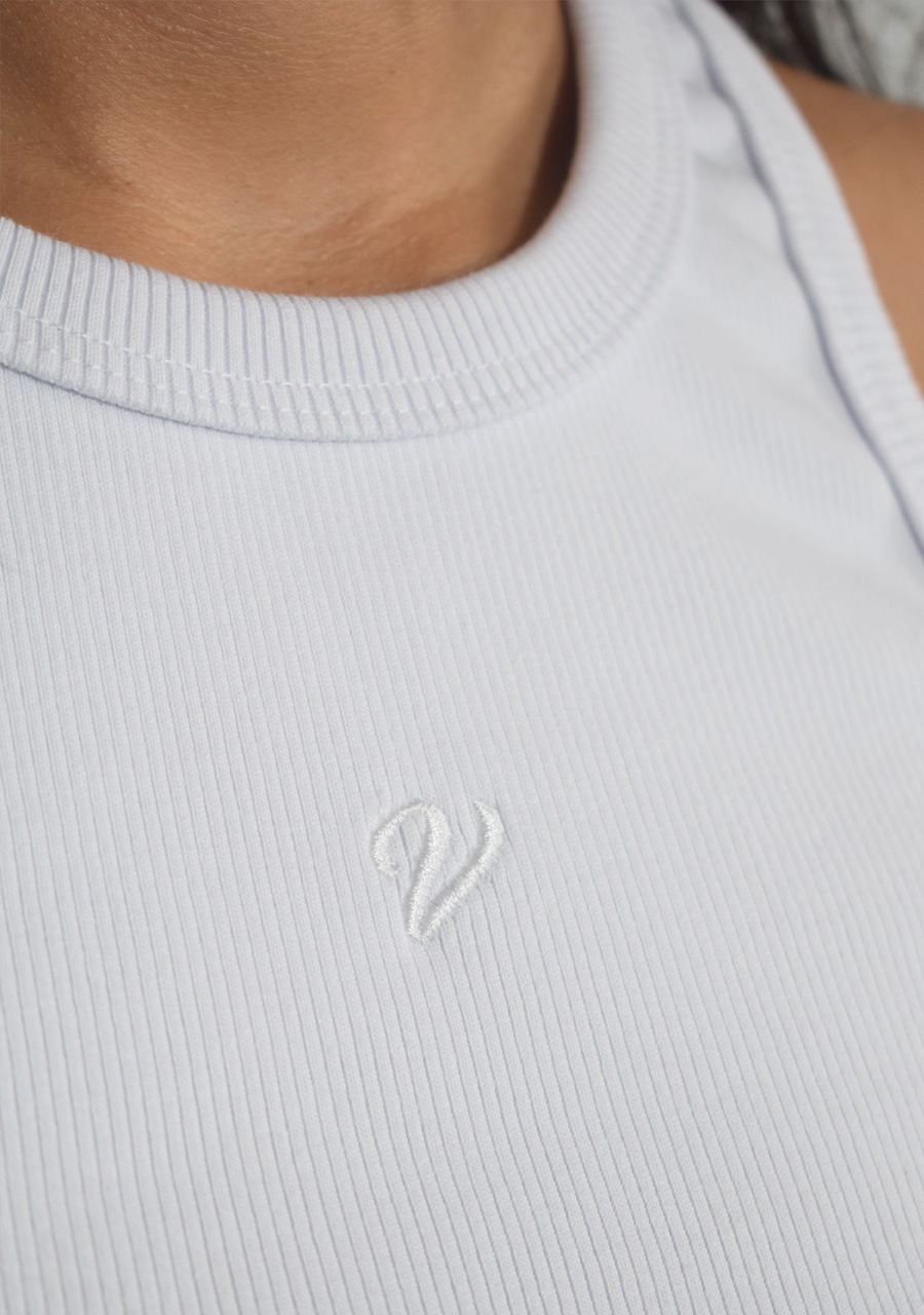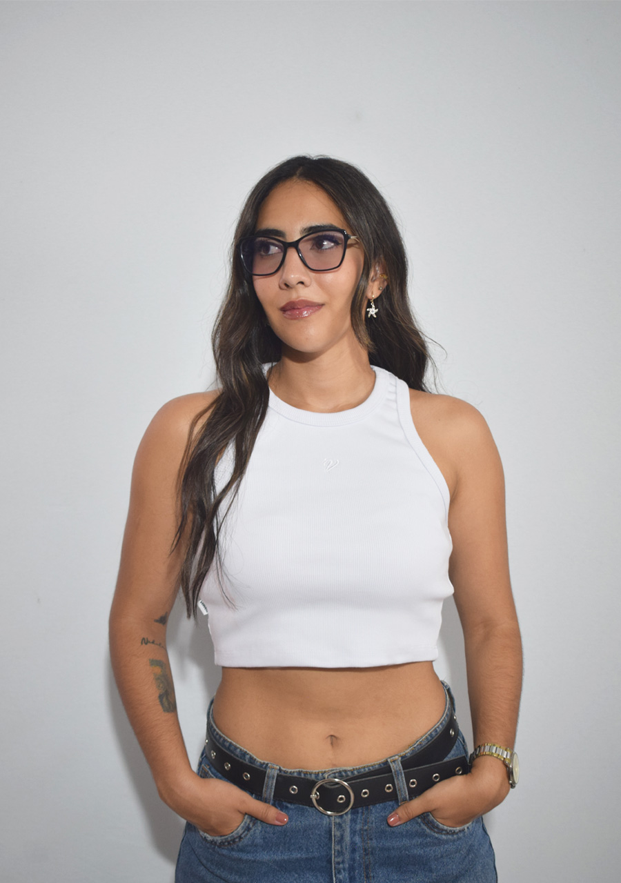 Crop top de dama en tejido rib, suave y elástico para un ajuste cómodo y favorecedor. Su diseño corto y moderno resalta la figura, con bordado en alto relieve en delantero, con marquilla es costado derecho.